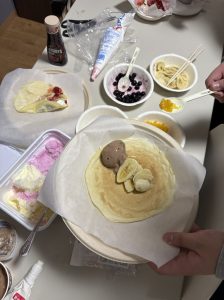 デザートづくりでは、クレープを作りました。