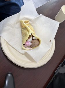 完成したクレープの写真を撮ったり、